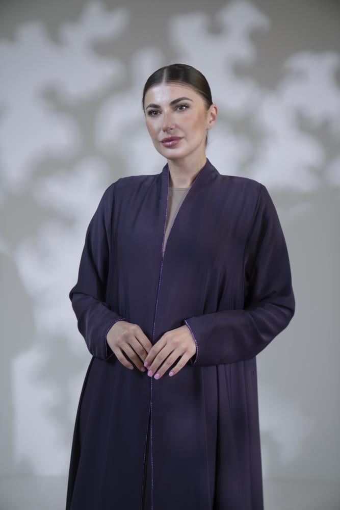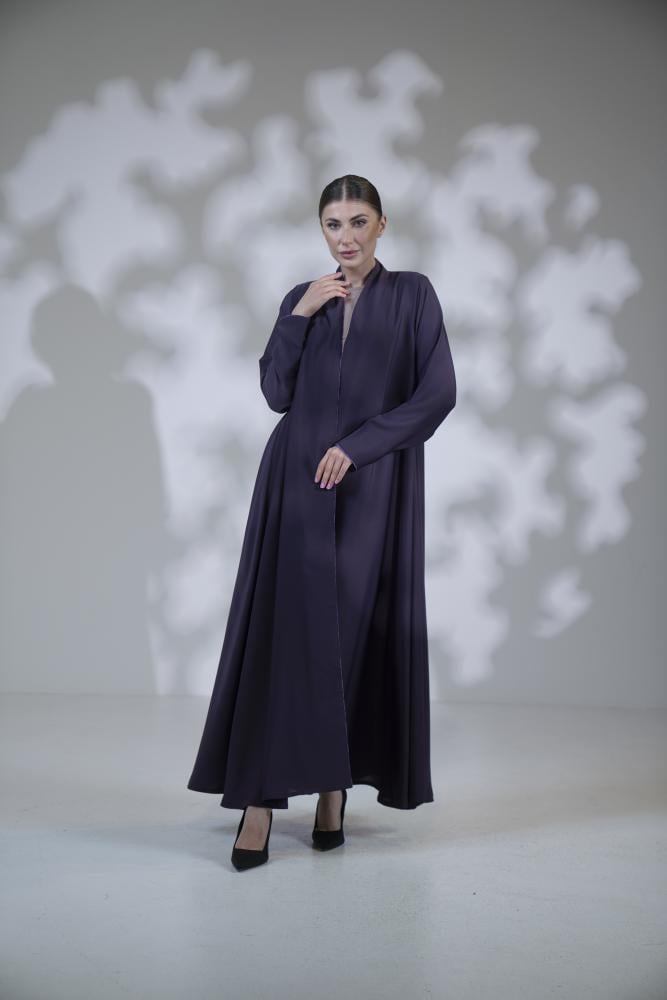 عباية كريب خفيف دبل كلوش سادة بلمسة قيطان