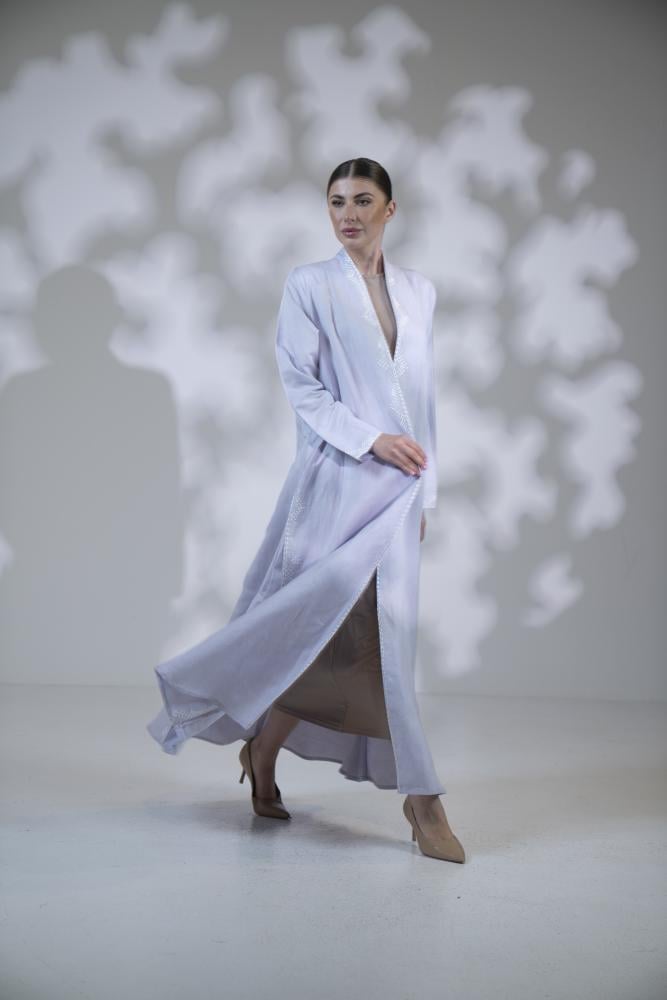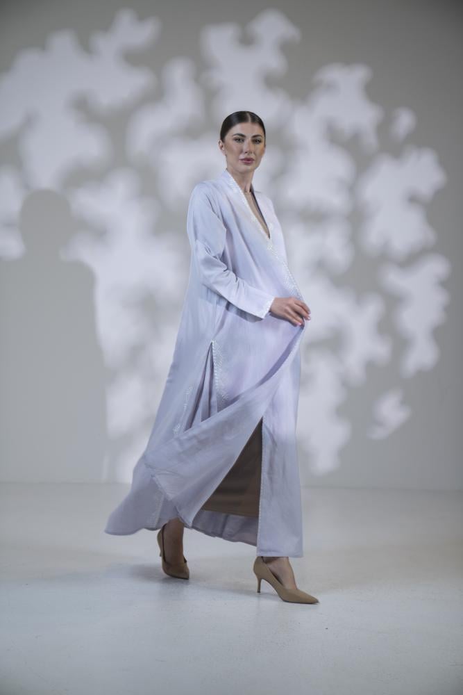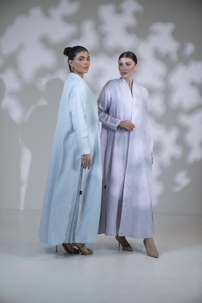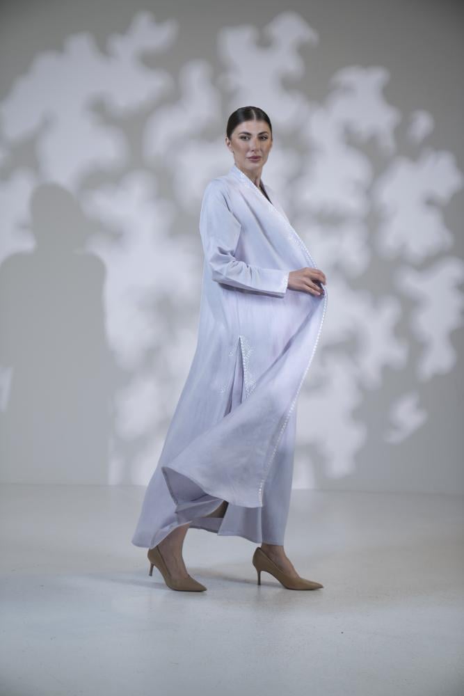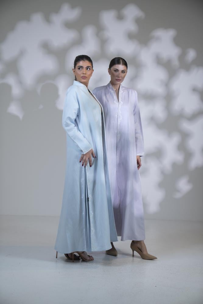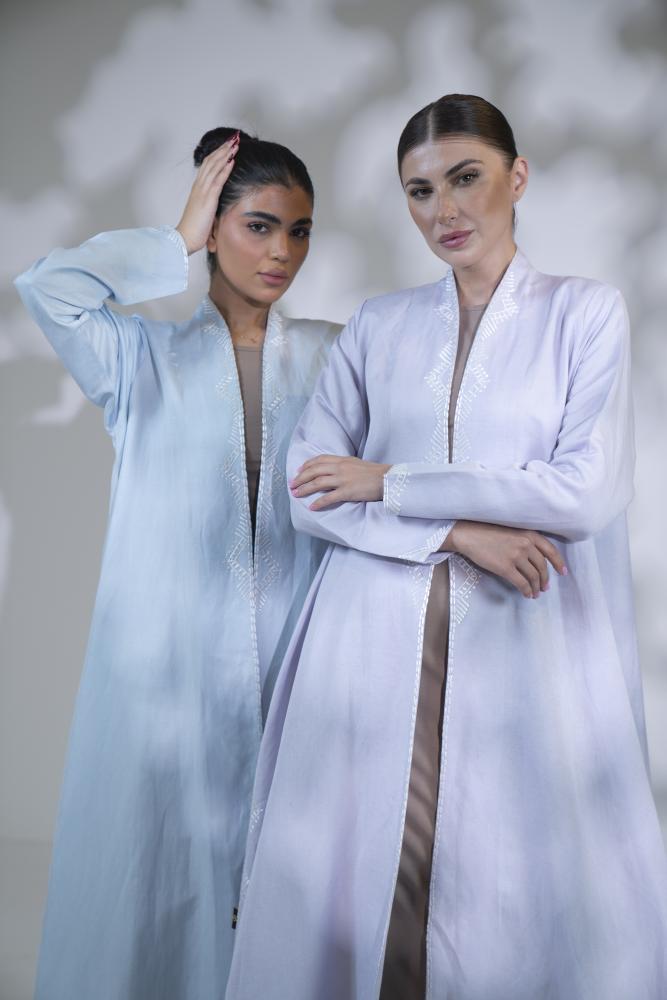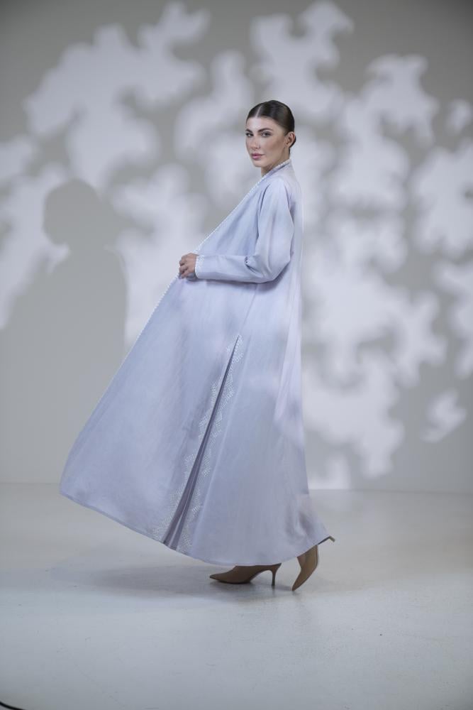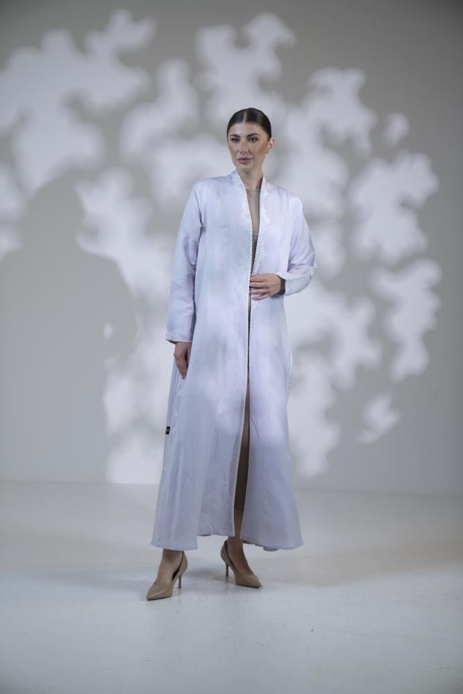 عباية فاخرة من خامة لِنن فسكوز مميزة، بتصميم عصري مطرز على الأكمام والجوانب مع كسرة جانبية أنيقة تضيف لمسة أنوثة ورقي.