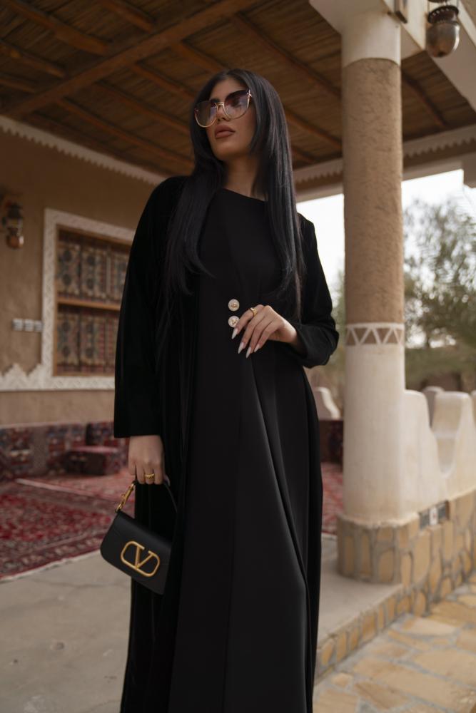 عباية مخمل طبقتين بكريب اسود